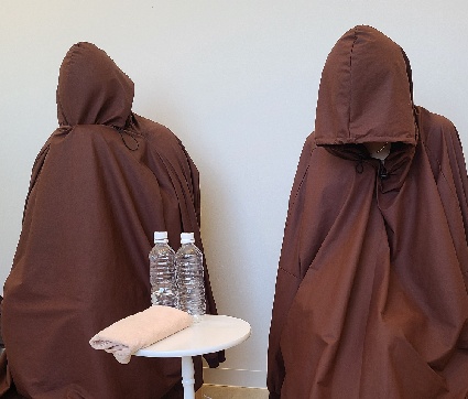 蒸しは、専用のマントを着ていただき